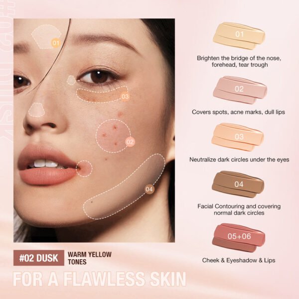 - Multifunctional Palette: Combines concealer, contour, and blush creams for a complete face makeup routine.